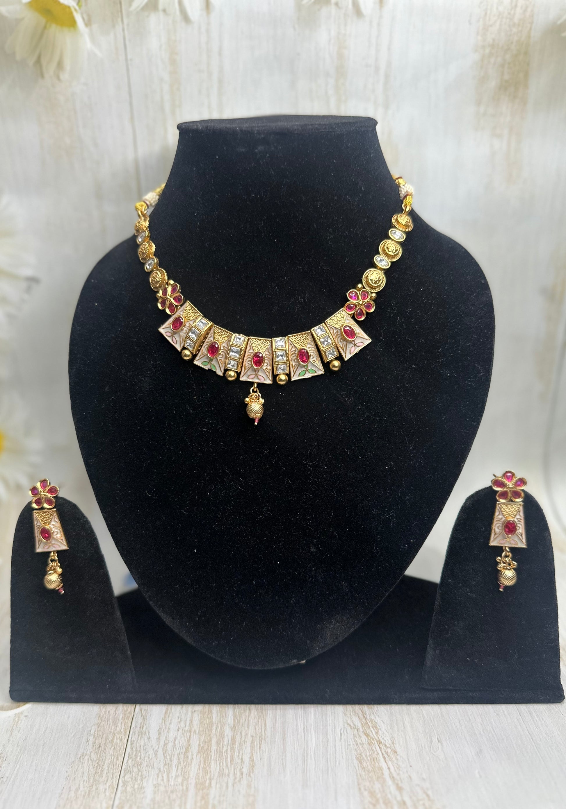 - Style: Meenakari choker-style necklace with matching earrings